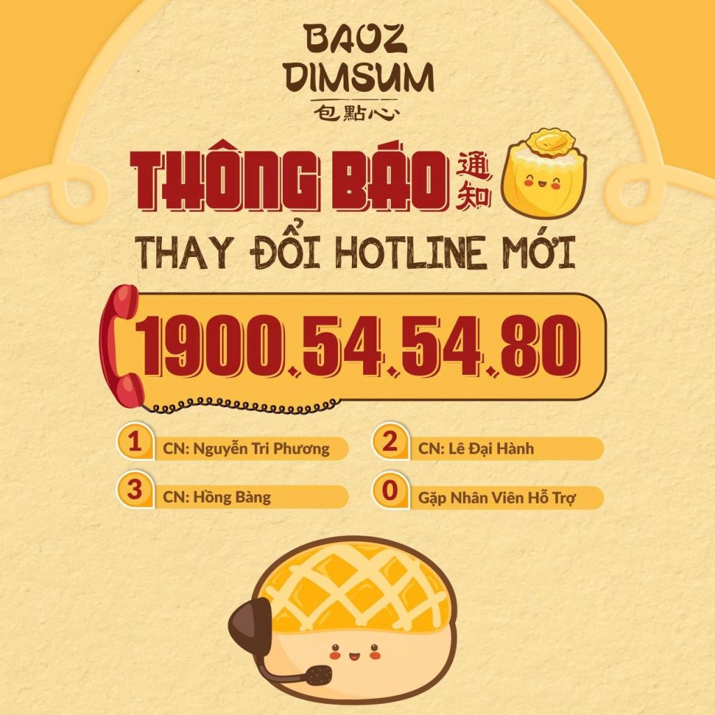Hotline của Baoz Dimsum nay đã chính thức đổi sang số mới – để mỗi cuộc gọi được chăm sóc tận tâm và mỗi bữa ăn thêm phần trọn vẹn.